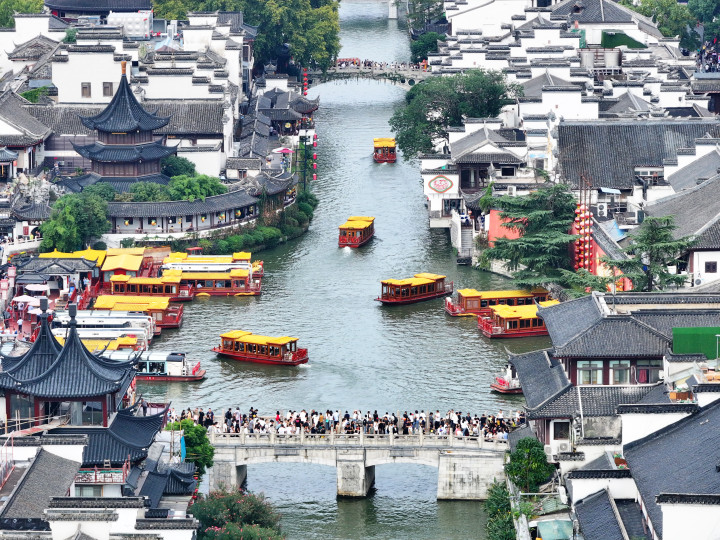 10月1日东程配资,游客在南京夫子庙景区游览。(新华社)
